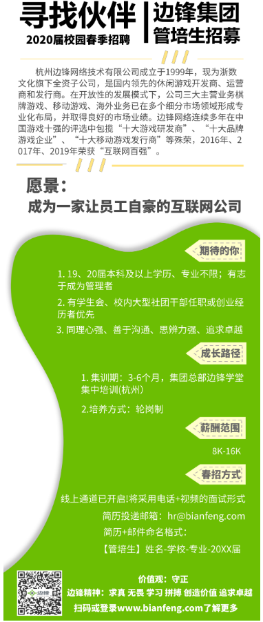 杭州边锋集团网络技术有限公司管培生招募