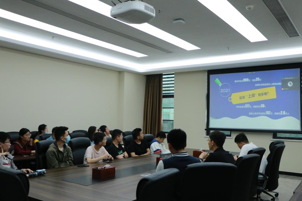 521日下午,91免费版 就业指导中心刘超老师来院开展毕业去向落实交流讲座,91免费版 暂未确定毕业去向的学生参加交流会,会议由辅导员熊攀攀主持。