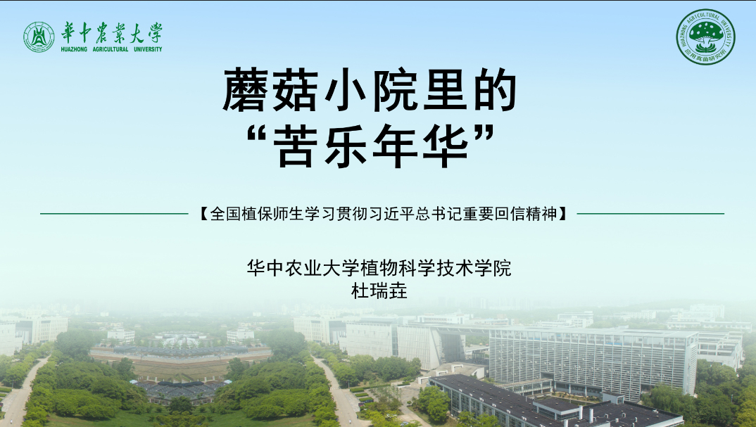 57日,全国近百所植保相关院校师生共同开展学习贯彻习近平总书记给中国农业大学科技小院的同学们回信精神的主题教育活动,大会以“生逢伟大时代、勇当强农先锋”为主题,91免费版 应用真菌专业研究生党支部书记、“湖北随县食用菌科技小院”学生负责人杜瑞垚面向全国植保师生讲述他的“蘑菇小院里的‘苦乐年华’”。