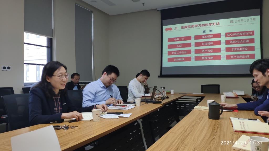 崔蜜蜜一起参加支部学习和研讨,她认为,大学阶段在青年的人生观、价值观的形成中非常重要,高校教师是育人的主体、课堂是育人的主战场,具有重要的作用,高校教师要继续努力,将党史学习的体会与学生的课堂思政教育结合起来,努力完成好国家和人民赋予的教书育人的神圣使命。