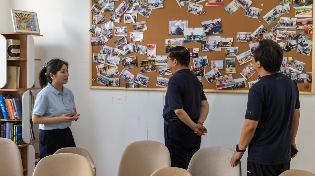 王英一行先后参观了学生驿站、辅导员值班室、图书角、24h自习室、问学斋等,详细了解了辅导员“五同”工作传统、智慧农业书院的运行模式和育人成效,围绕学生社区建设、宿舍安全管理等内容进行了深入交流。
