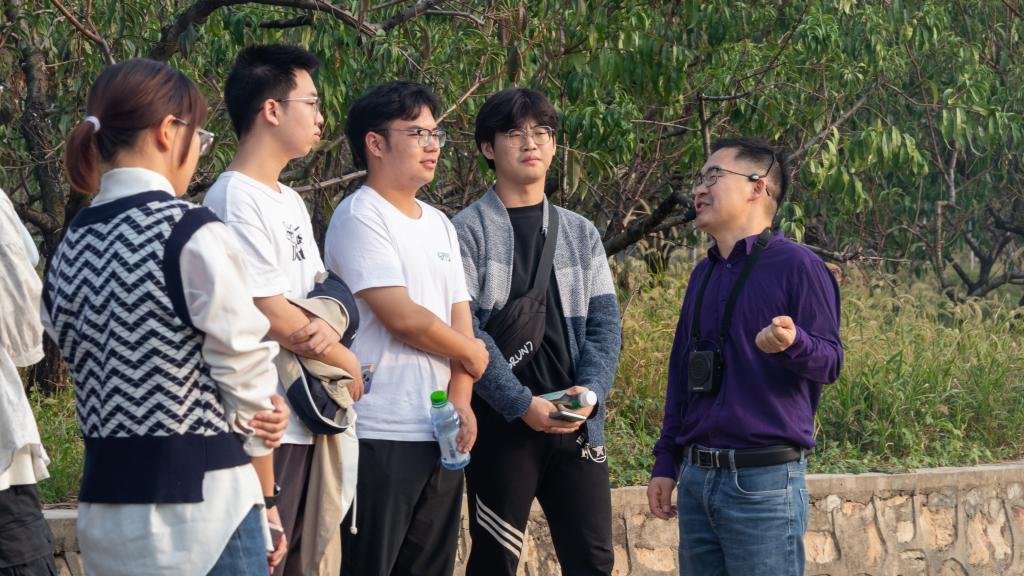 在园艺实践教学基地,黄远引导同学们思考“果园应该怎么进行智慧化生产”并讲授了其中可能遇到的各类困难。“智慧农业对于从业者素质要求高,对基地投入要求高,这是目前需要突破的重大问题。”黄远指出,智慧农业中信息技术是底层技术,但是目前成本较高,而农业需要低成本,两者存在矛盾,解决办法就是规模化,标准化农业。