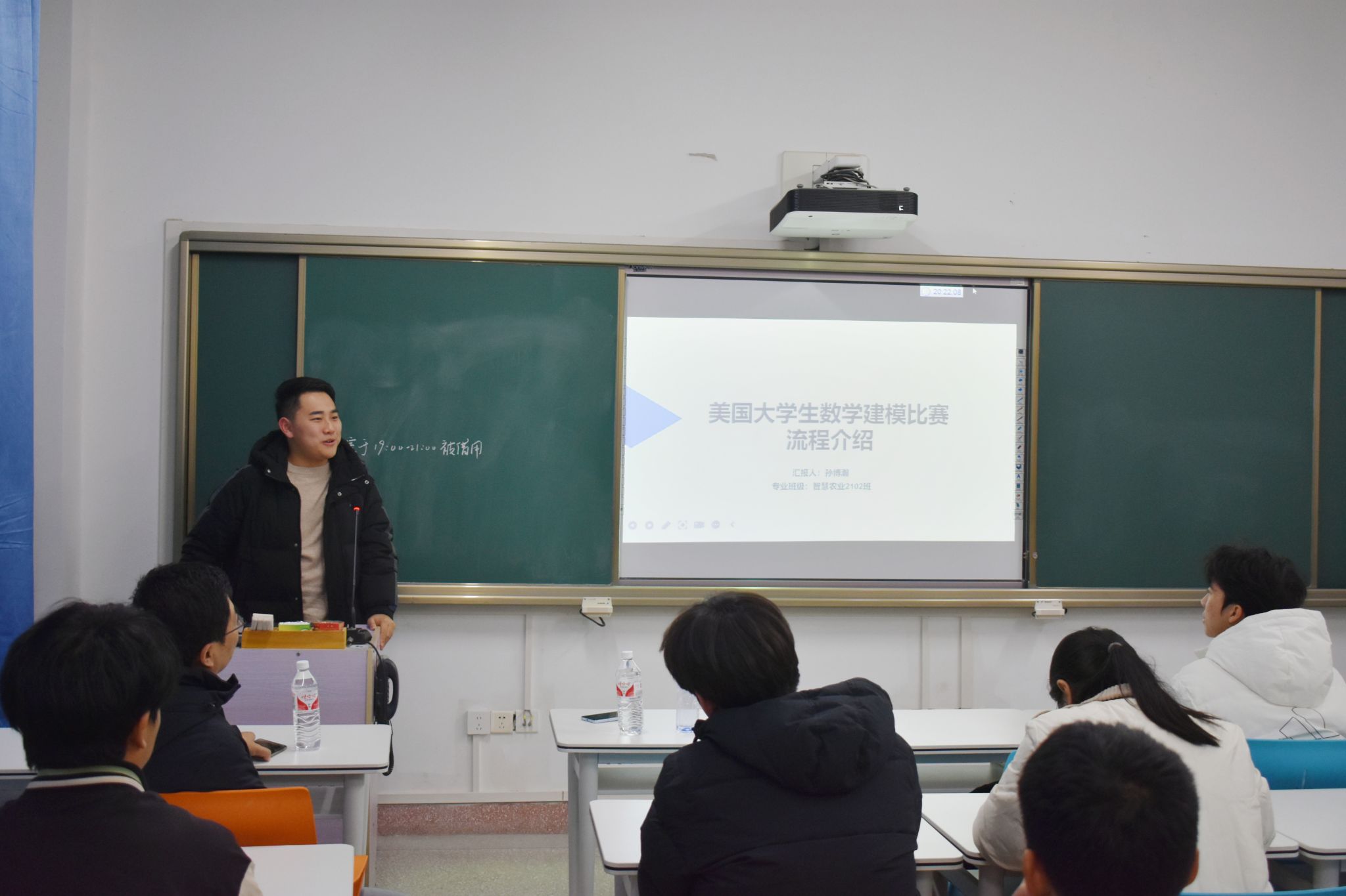 副教授李治,智农2102班孙博瀚受邀以“智解数模,竞展风采”为主题展开经验分享,为35名同学解读数学建模竞赛安排,帮助同学们制定目标,找准方向,答疑解惑。