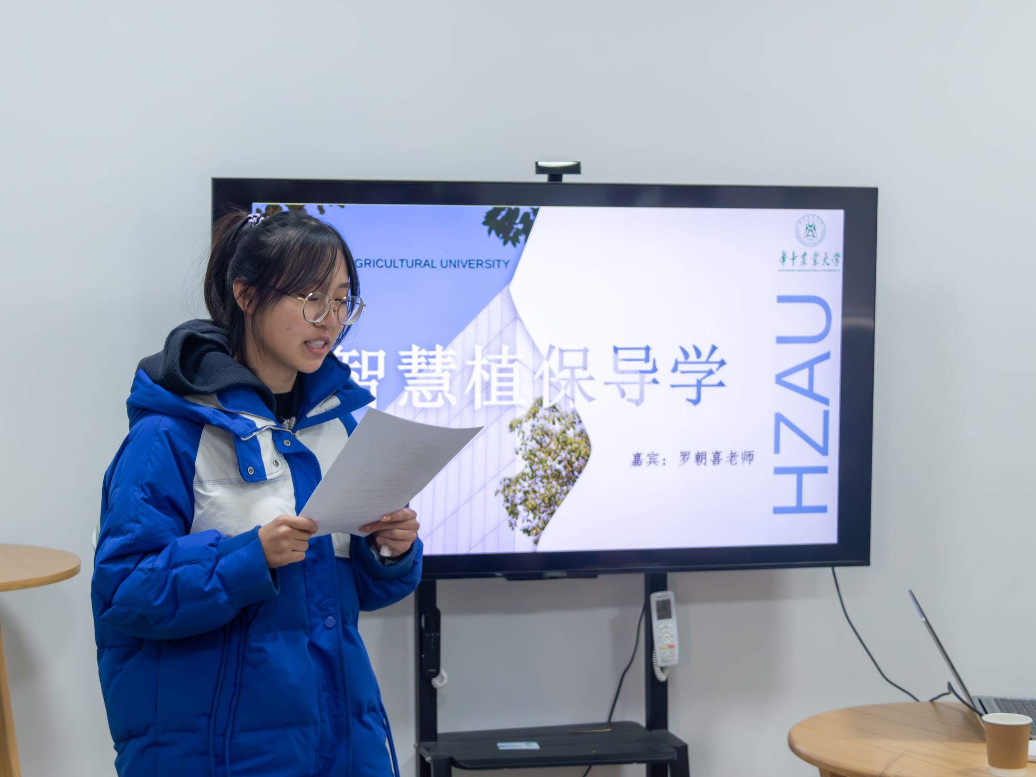副院长罗朝喜教授受邀讲授智慧植保相关概念及技术,帮助30余名书院学子深刻理解智慧植保方向。活动由智慧农业2404班张洛伊同学主持。