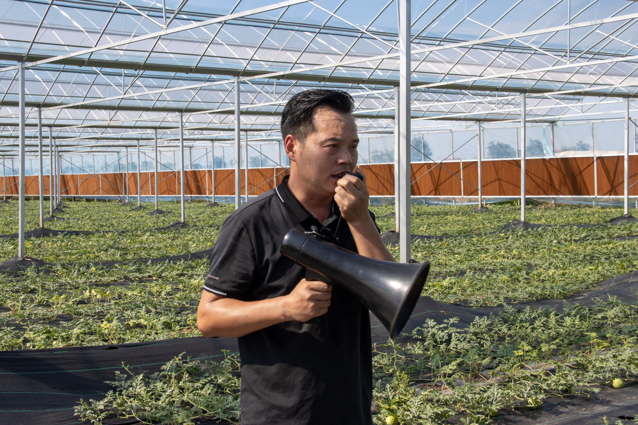 湖北正苒农业有限公司总经理郑清华热情接待师生一行,详细介绍公司核心作物洪山菜薹与薄皮甜瓜从种植、采收、运输到销售的全产业链流程。公司基地采用季节性轮作模式,秋冬种植洪山菜薹,春夏种植薄皮甜瓜。具有1800年种植历史的洪山菜薹,以独特艳丽色泽、风味口感和较高营养价值著称,区别于普通菜薹,但该品种种植条件严苛,需通过轮作花生改良土壤、防治病害。目前,公司洪山菜薹种植面积500亩,总基地面积1020亩,采用分散种植模式缓解集中用工压力。