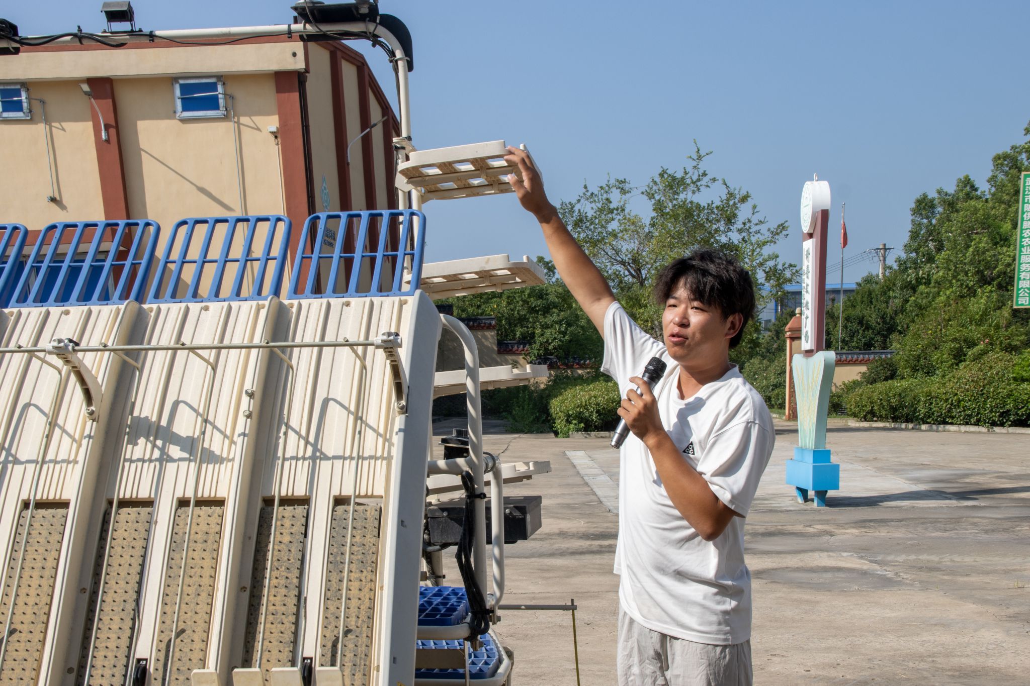 随后,“00后”农机手陶哲为同学们演示了智能农机的田间作业状态。依托北斗卫星导航系统,无人驾驶拖拉机可精准执行预设航线任务。据介绍,一台无人驾驶拖拉机仅需不到30分钟即可完成3亩农田的旋耕作业;农药喷洒无人机5分钟即可完成30亩地的喷洒任务,单日作业面积可达约1000亩,显著提升了农业生产效率。