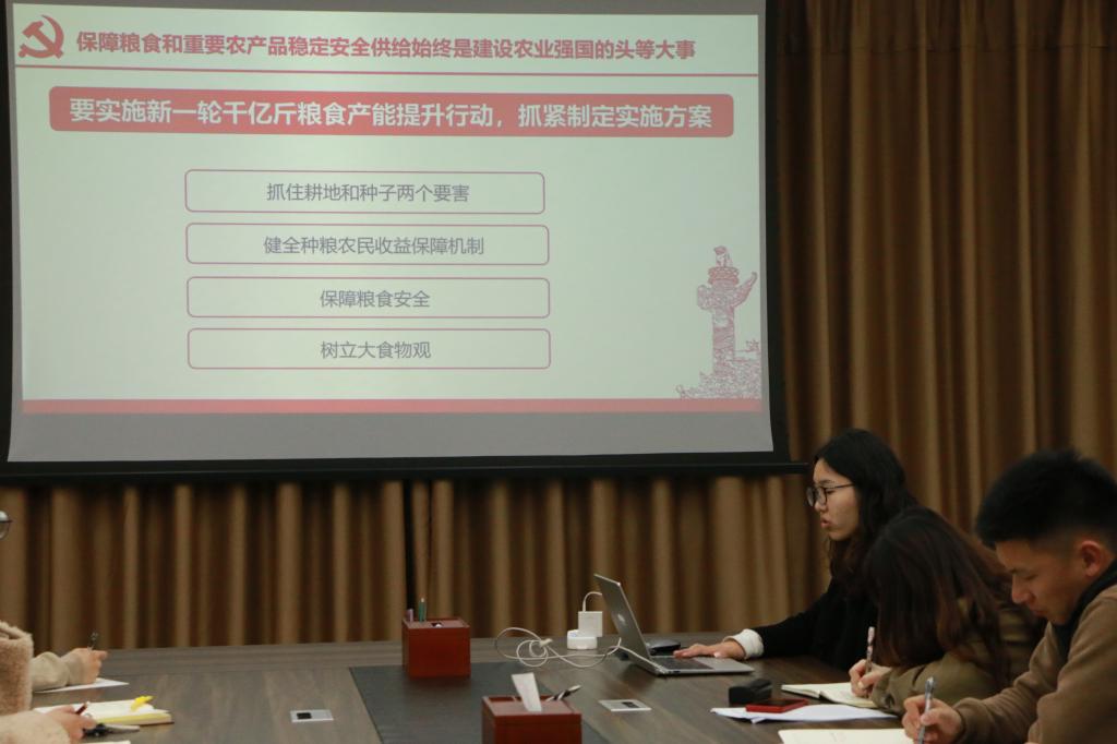 领学完毕后,党支部书记们纷纷发表自己的感悟。育种第四党支部书记张琴谈到:“只有充分发挥中国共产党的政治优势和中国特色社会主义的制度优势,凝聚各方力量,形成海内外中华儿女‘心往一处想、劲往一处使’的生动局面,才能不断攻坚克难,开拓创新,勇毅前行”。育种第六党支部书记张伟则表示,“通过学习,我充分体会到乡村振兴战略的重要性。乡村需要我们这样的农业人扎根于此,铆足劲,开好局,走好步”。