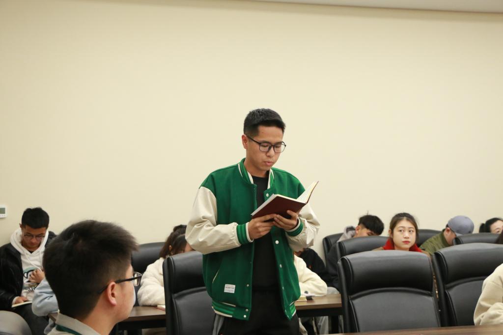 会议伊始,四位支部书记针对2月份的时事政治依次进行领学。育种第三党支部书记庄季昕就“习近平总书记在中央农村工作会议上的重要讲话”进行分享,她谈道:“华农95后硕士彭达发起‘菱辟蹊径,强农兴农——菱角全产业链赋能乡村振兴项目’,帮助农民增收致富,展现了作为农科学子应有的责任与担当”。育种第八党支部书记付超对2023年发布的中央1号文件进行领学,他认为:“作为党员的我们要紧密团结在以习近平同志为核心的党中央周围,坚定信心、踔厉奋发、埋头苦干,全面推进乡村振兴,加快建设农业强国,为全面建设社会主义现代化国家、全面推进中华民族伟大复兴作出新的贡献”。 农药专业党支部书记任志杰就“习近平总书记在中共中央政治局民主生活会上的重要讲话”展开领学。农昆第二党支部书记罗仁刚解读了“习近平总书记在学习贯彻党的二十大精神研讨班开班式上的重要讲话”的会议精神。