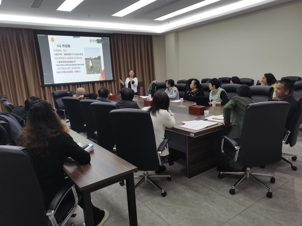 齐迎春研究员做了 “创建6Q学习环境 和谐师生关系探讨”的报告,“6Q”代表了六大核心能力:智商(IQ)、情商(EQ)、意商(CQ)、身体智能(PQ)、社交智能(SQ)和道德智慧(MQ)。齐老师提出老师只有给予学生无条件的爱,帮助他们建立独立自主的价值体系,让其保持终身成长的心态,才能让学生保持快乐、有活力。齐老师充满激情的讲演,精彩贴切的例子,让支部老师们深表赞同。