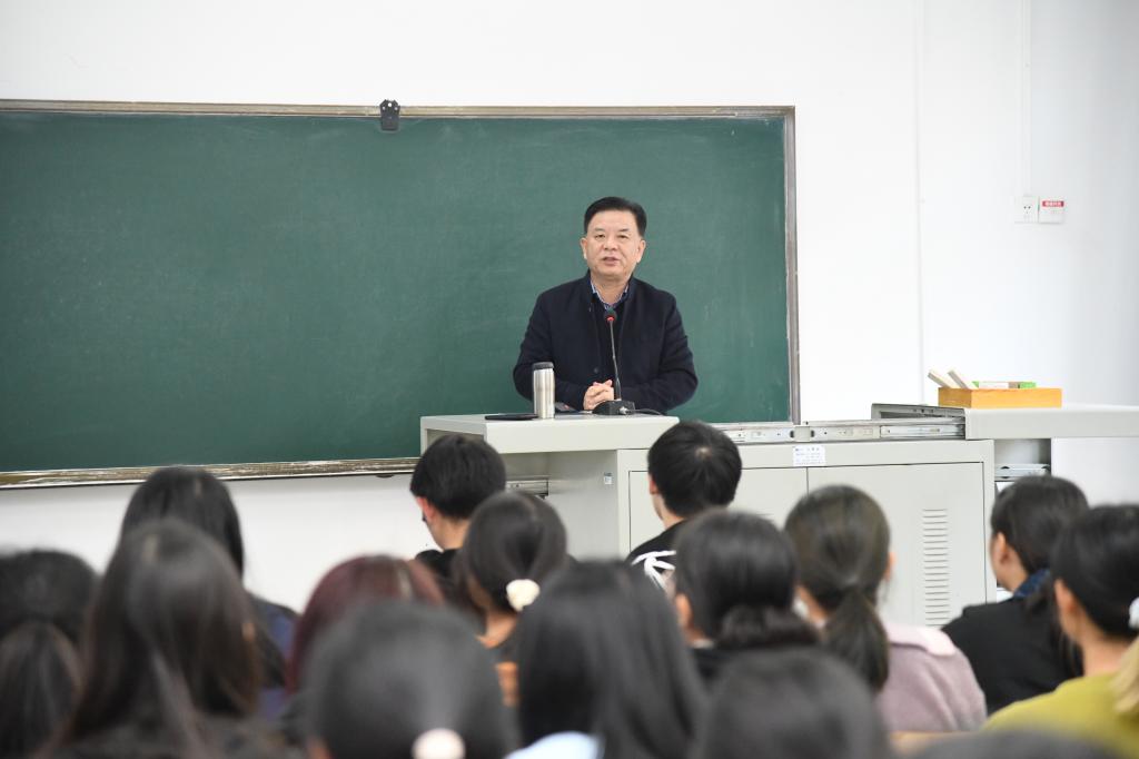2023级学生讲授形势政策课。姚江林以“加快建设农业强国 华农担当与青年作为“为主题,从认识、担当、作为三个层面展开讲述。