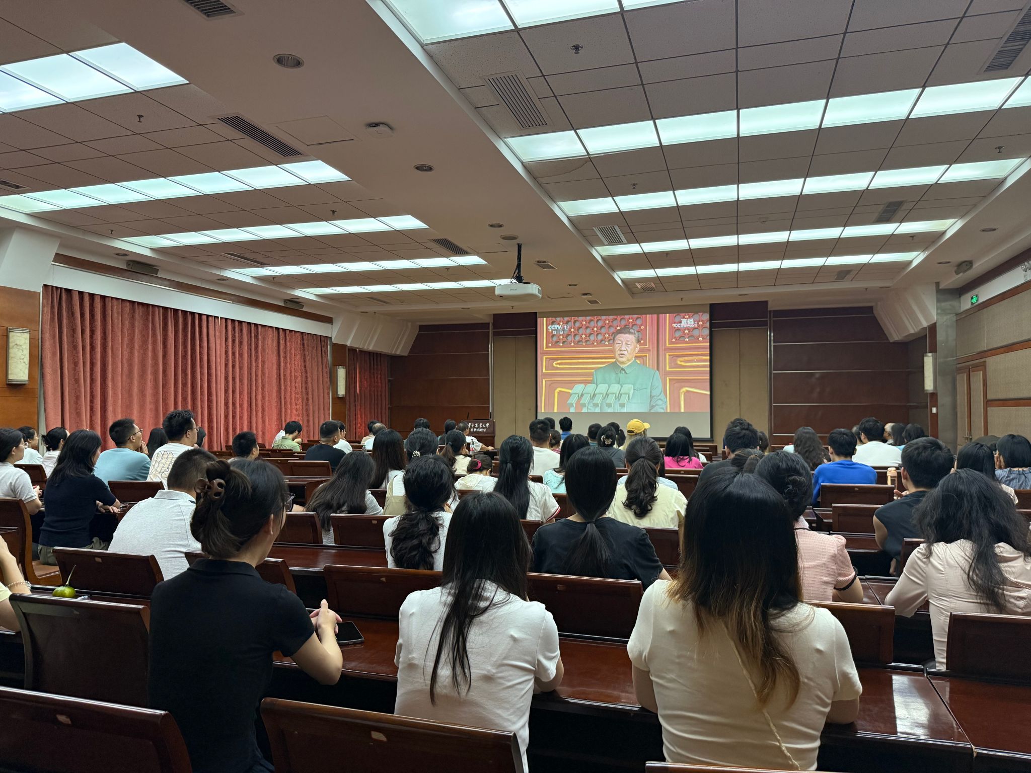 组织500余名师生党员集中收看了纪念大会实况直播。各学科团队师生在三综A705、分子楼报告厅主会场,实验室、教室、办公室、宿舍等通过网络、电视多形式积极收听收看中国人民抗日战争暨世界反法西斯战争胜利80周年大会直播。