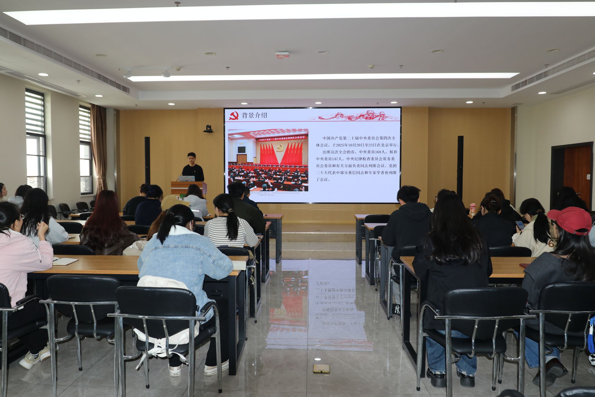 作物遗传育种专业研究生第十党支部书记贺帅豪在领学学习体会党的二十届四中全会精神时分享道:作为农科学子,要始终坚持扎根田野、聚焦农业科技创新,主动将个人学术成长与职业发展融入乡村振兴国家战略,为加快推进农业农村现代化贡献青春力量。