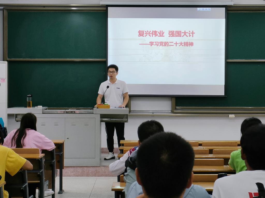 授课教师谈到,青年强,则国家强,中华民族伟大复兴的未来寄希望于青年。习近平总书记对新时代共青团员提出“五个模范”的殷切希望,要做理想远大、信念坚定的模范,要做刻苦学习、锐意创新的模范,要做敢于斗争、善于斗争的模范,要做艰苦奋斗、无私奉献的模范,要做崇德向善、严守纪律的模范。希望学生们通过学习党的二十大精神,坚定不移听党话、跟党走,怀抱梦想又脚踏实地,敢想敢为又善作善成,立志做有理想、敢担当、能吃苦、肯奋斗的新时代好青年,让青春在全面建设社会主义现代化国家的火热实践中绽放绚丽之花。